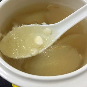 梨切块,跟燕窝和南杏一起隔水炖1小时即可。