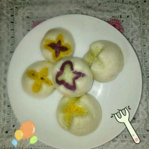 第四步,把面片包好,柔成圆形,拿刀切十字,冷水上鍋醒20分钟,发火烧开水蒸15分钟,闷3分钟揭盖,