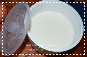 这是做好了的酸奶,凝固的,像豆花一样,奶香味比买来的浓很多,也不会有什么添加剂。