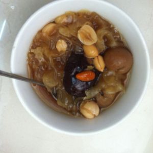 花生冷水泡,不去皮,对于血小板的补充很有帮助,如果追求色香味者,此料也可不放