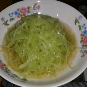 莴笋去皮擦成细丝,放在冷水中浸泡二十分钟。