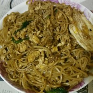 加入面条翻炒,再加少许老抽,就不要放盐了,会咸