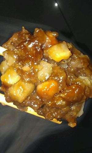 萝卜砌粒用水焯下,沥干水备用。萝卜也可用豆腐代替。猪肉砌粒(肥瘦肉依个人喜好而定,个人觉得肥肉少些较好)。加入先前备好的番薯粉。