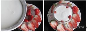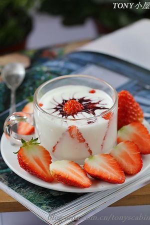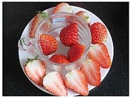 用上面同样的办法清洗草莓,对切,放入盘子和杯里;