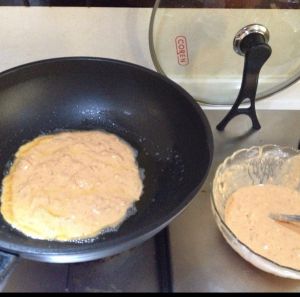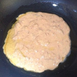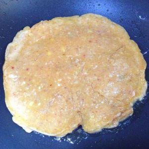将面糊倒入平底锅内