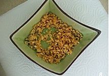 蒜剁成茸,锅下油中火烧微热,倒入蒜茸,改小火炒成金黄色的蒜茸,沥干油份放入碟中