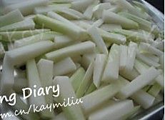 萝卜洗净,切成条。(在湖南一般大家都切成如下第二张小图的样子,顶头不切断,方便挂起来晒)