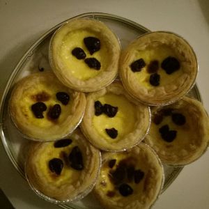 把蛋挞皮提前解冻,把蛋液放到蛋挞皮8分满,上下火200度,烤20分钟。就好了。提前5分钟放入喜欢的果干。我放的的是蔓越莓。