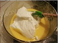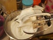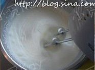 鲜奶油加糖打发,打到不呈液体流动状即可。