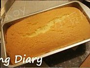 将搅匀的蛋糕糊倒入模具中7分满,拿起模具在桌上震几下把大气泡震出来,然后迅速放入预热325°F的烤箱里,烤35分钟,用牙签插入蛋糕中间,拿出来牙签上没有粘液体就可以了。