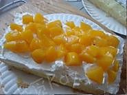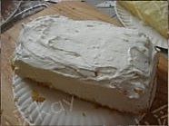 蛋糕横截切成两片,在第一片上抹上奶油,