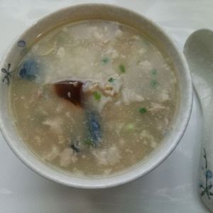 放入皮蛋翻炒。然后调味放盐,也可以放一点酒,去腥味,放点生抽。熟了就可以起锅倒入煮好的粥,然后等粥沸腾放点鸡精,最后放入葱花,就可以关火了