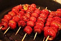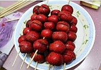 关火,把山楂串放进锅里,来回滚动,让山楂外面沾满糖液。我今天熬的糖有点少了,所以沾得并不均匀