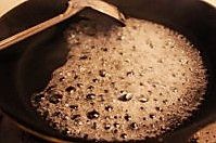 不沾锅里加糖和水,糖和水的比例大概在2:1,开始熬糖,先是糖沸腾起大泡