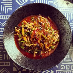 加入青椒丝,笋丝,木耳丝翻炒上色,最后加入肉丝,把调好的糖醋汁倒入,翻炒均匀后就OK啦~