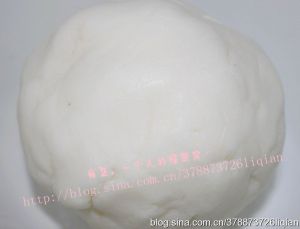 粉他盐类混合过筛放深盘中,慢慢加入刚滚开的开水用筷子拌成片状。落油用手慢慢揉成光滑的面团。