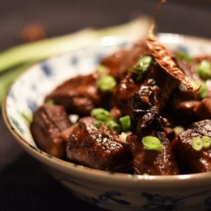 加入姜丝,八角和干辣椒,黑豆酱或黄豆酱翻炒