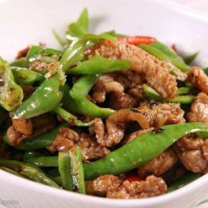 先煸炒辣椒,盛入盘中,在爆蒜和姜,随后炒肉,待肉稍稍变色随即放入辣椒,开大火翻炒2到3分钟(重口味的亲们可以放点辣椒酱),即可出锅。肉质香嫩可口呀!