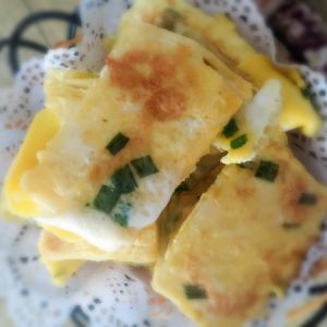 馒头切薄片~鸡蛋➕盐➕少许水➕小葱末搅拌均匀~