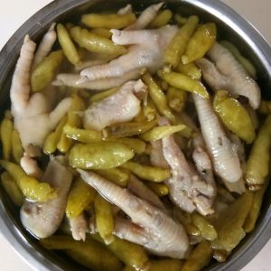 泡椒和泡椒水放到盆里在放到冰箱冷藏