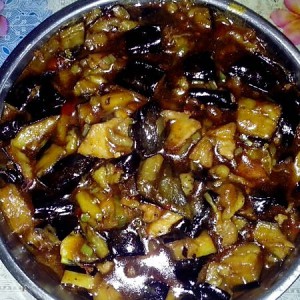锅热倒油,等油热的时候,火候自己掌握,倒入茄子炸。炸茄子的空当里我们调一下鱼香汁,淀粉,水,糖,醋,酱油调匀,调好放在一旁待用。把肉切成片待用。茄子炸好以后捞出控油。
