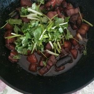 一个小时以后放入冰糖和米酒,大火收汁再撒上香菜就可以上桌啦~看起来就很下饭有没有