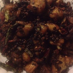 鸡块捞出,重新放少许油。依次放入八角,葱,花椒,干辣椒翻炒至出香味,马上放入鸡块。出香味后放入少许盐,白糖即可出锅