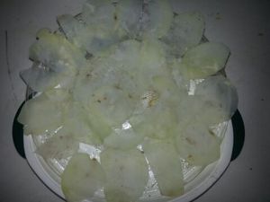 进微波炉2分钟后撒些烧烤粉,再进去6分钟,看厚薄而定!姐的刀工还是不错哒!嘿嘿!出锅就是这样啦!很easy啦!