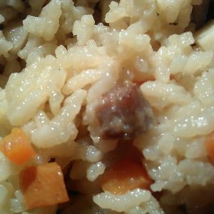 五花肉切小块,胡萝卜,洋葱,山药切小块,大米淘洗干净
