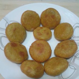 包入豆沙馅,做成小饼,油三分热入锅炸