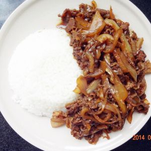 油热后倒入洋葱丝,煸炒至透明,加入老抽、白糖,然后加入热水,沸煮两分钟~