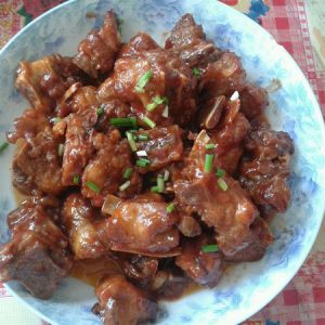 锅中放油,弄干水份的排骨倒入锅中翻炒至金黄色,之后把调好的调料倒入锅中一起翻炒,注意翻炒的速度,因为炒过久的话白糖容易变苦!炒好之后关火,把番茄酱倒入一起翻炒均匀即可,之后撒上葱花便可,香喷喷的糖醋排骨出炉拉!