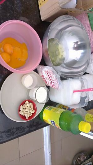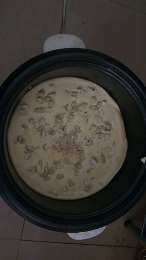 撒入掰碎的腰果,按下煮饭,等跳到保温后静致20分钟,在按下煮饭,跳了以后再静致20分钟,用牙签试试蛋糕,里面没液态的东西就熟了,如果还不行就照前法再循环一次。