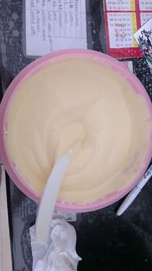 然后就是搅拌了,要上下左右的搅拌,不能画圈。画圈的话蛋糕会不泡。