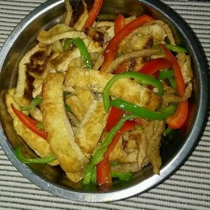 青椒,红椒切丝