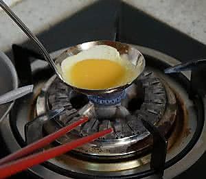 开小火把勺子烧热;