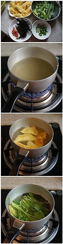 加热高汤或者清水,加入蛋饺煮三分钟至熟,加入紫菜,菠菜,虾皮,葱花,加盐,香油,白胡椒粉调味即可。
