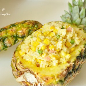 将菠萝饭盛出放入之前做好的菠萝碗中,开始享用酸甜可口的菠萝饭吧
