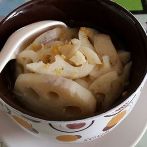 加入藕片 小火慢慢熬 熬到水略粘稠 藕片甜香入味即可
