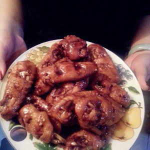 拣出锅中剩下的废料(葱姜,花椒)。盛出鸡翅,装盘