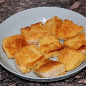 煎好了!很有嚼劲,很香!还有味!我以为没放盐什么的会没味道的!