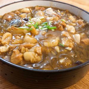 炖好之后,换锅加入粉丝继续炖煮,十分钟后加入切好的蒜蓉,等待收汁,起锅。撒上葱花,端出!