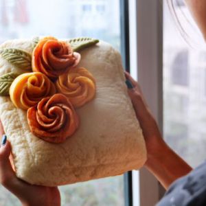 把做好的花和叶摆在切好的方形底座上,上锅蒸。水开后二十分钟即可。