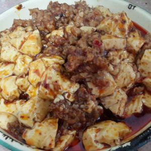 之后打开调味包,直接倒进锅,肉胶也倒进去,然后加点水,不用太多,把豆腐也倒进去炒几下!试一下味道觉得想下盐就下盐,我是下了的!!!!