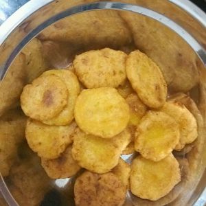 也可以用油炸,就是像上面步骤,做成面团。一个一个放下油锅,这是成品。