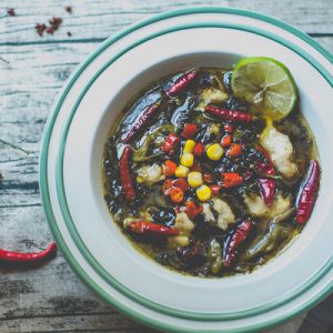 锅烧热入油,下姜片、蒜瓣、花椒、辣椒煸香后加水。再将调料里的酸菜包与另一调料包倒入锅中烹煮。