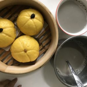 南瓜切薄片盖上盖子蒸熟(防止蒸的过程进水),等南瓜蒸熟冷却后加入所有材料混合均匀,蒸熟的南瓜+牛奶大概90克左右,具体要看面粉吸水性和南瓜会不会蒸熟太湿。如果面团太干再加点牛奶揉入面团,把它们揉成光滑的面团即可。