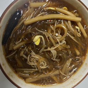 根据个人口味加入甜醋,蒜泥,姜丝及花生碎,这样一碗家庭版酸辣粉丝就完成啦,简单易上手,味道不错哦