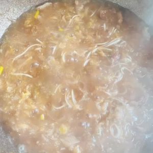 放入酸菜、粉条,加水,小火慢炖20-30分钟、放入八角,桂皮、五香粉。开锅后放入盐,味精、最后再放入一把蒜末、出锅即可