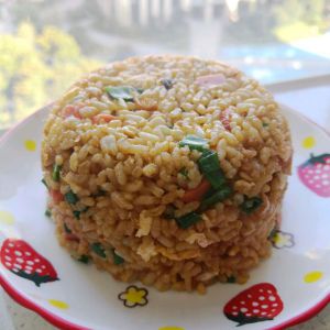 昨天晚上的剩米饭,准备好火腿肠丁,葱花和鸡蛋。